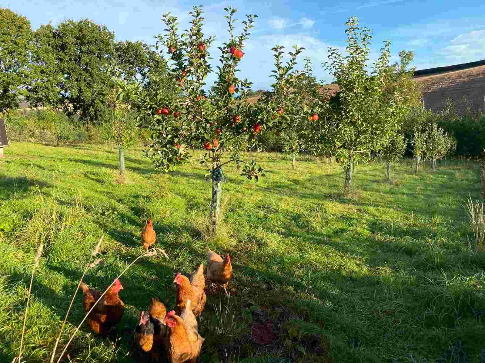 Our eggs are supplied in half dozens as part of our veg boxes and are laid by our Lohmann Brown hens, known for their rich brown shells and deep golden yolks. The hens roam freely over just under an acre of orchard and pasture, which we rotate regularly to keep both birds and land healthy. They forage on grasses, seeds, and insects, and in autumn enjoy windfall apples from the orchard. Alongside this, they are fed a high-quality organic feed supplement to ensure balanced nutrition. We are currently in our second year of organic conversion and working towards full certification in 2028. Produced with care, biodiversity, and soil health at heart — fresh, local eggs from our farm to your veg box.